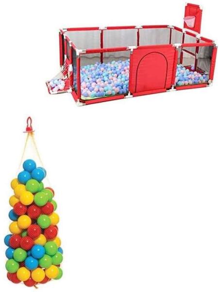 Játszóka focikapuval és kosárpalánkkal + 100 db labda: A tökéletes szórakozás kicsiknek és nagyoknak! ⚽️? Lepd meg gyermekedet ezzel a nagyméretű, piros játszókával, amely focikaput, kosárpalánkot és 100 db színes labdát is tartalmaz! Ez a tökéletes kombináció a vidám és aktív játékhoz, akár otthon, akár a szabadban. A játszóka:Nagy méret: Kb. 182x122x64 cm, így bőven van hely a játékhoz. Biztonságos: Hálós oldalfalak a szellőzésért és a folyamatos felügyeletért. Cipzározható bejárat a biztonságos játékhoz. Sokoldalú: Bel- és kültéren is használható. Tartós: Poliészter anyagból készült. Kényelmes: A hálós oldalfalak biztosítják a megfelelő szellőzést. Korosztály: 0-6 éves korig A labdák:100 db színes labda: Sárga, piros, zöld és kék színben. Méret: 6,5 cm átmérőjűek. Anyag: Műanyag Könnyű tisztítás: Száraz törlőkendővel könnyen tisztítható. Korosztály: 1,5 éves kortól ajánlott Fejlesztő hatás: Javítja a reflexeket és a mozgáskoordinációt. Egy termék, számtalan lehetőség! ? Ez a játszóka nem csak egy biztonságos hely a játékhoz, hanem egy igazi kalandpark a kicsiknek. A focikapu és a kosárpalánkkal fejleszthetik a motorikus képességeiket, a színes labdák pedig órákon át tartó szórakozást biztosítanak. Ideális születésnapi bulikra, baráti összejövetelekre vagy csak egy vidám délutánra a családdal.